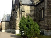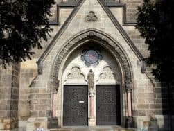Die Herz Jesu Kirche Dresden gibt es seit 1903. Die in Anlehnung an die Frühgotik errichtete neogotische Herz Jesu Kirche ist ca. 42 Meter lang und 26 Meter breit. Neben dem 17 Meter hohen Mittelschiff und zwei Seitenschiffen hat die Kirche noch ein Querschiff. Die Lasten aus den Kreuzgewölben werden zwischen Mittelschiff und Seitenschiffen von runden Porphyrsäulen aufgenommen. Diese Säulen werden von realistisch und variationsreich gestalteten Blätterkapitellen und Konsolen geschmückt. An den pfeilergestützten Eckarkaden neben dem Chor oder auch außen an den Eingängen treten in verspielter Form Tierskulpturen (Schnecke, Eule, Eichhörnchen oder auch eine Vogelfamilie) aus dem Blattwerk hervor. Der östlich vor dem Haupteingang angeordnete Glockenturm ist 69 Meter hoch.
